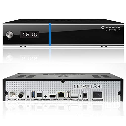 GigaBlue UHD Trio 4K Box ricevitore satellitare DVB-S2x DVB-C2 DVB-T2 Tuner incl. penna WLAN Babotech [2160p,PVR,HDMI, slot per scheda SD] - Nero