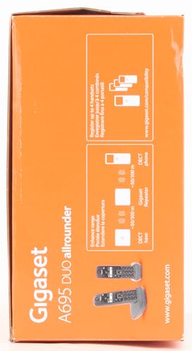 Gigaset A695 Duo - Telefono senza fili, 2 ricevitori con ampio schermo retroilluminato per una facile visualizzazione, blocco delle chiamate, grigio