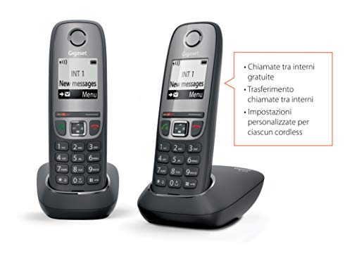 Gigaset AS475 Duo, Due Telefoni Cordless, Chiamate tra Interni/Interfono, Rubrica Personalizzabile, Trasferimento di Chiamata, Display da 1.8" b/n, Nero [Italia]