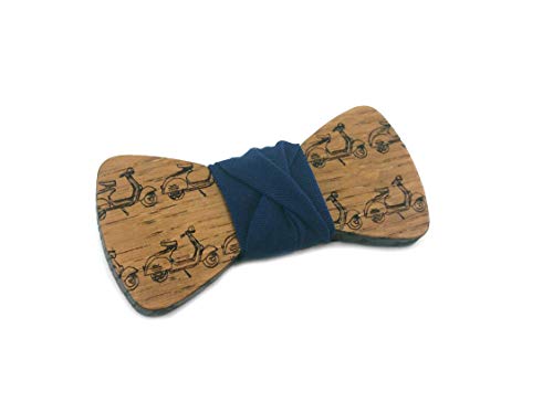 GIGETTO Papillon in legno Bambino Serie Pattern Nodo stoffa blu