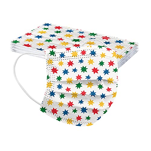 GIGIMountain 50 Pezzi Bambini Natale Protezione per Il Viso USA e Getta 3 Strati Motivo Natalizio Tessuto Cotone Antipolvere Visiera Bocca Faccia Regolabile Disegni Comfort(A34, 14.5x9.5CM)