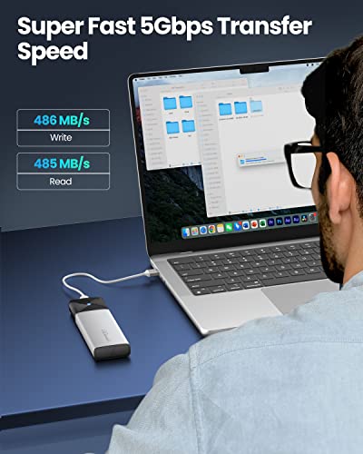 【Portatile e durevole】 GiGimundo Case SSD SATA M.2 ultra sottile rende l'alloggiamento portatile, resistente e ideale per i viaggi. Con il cavo da USB C ad A, trasferisci i tuoi dati più velocemente. Velocità massima fino a 485 Mb/s, trasferimento di file di grandi dimensioni in pochi secondi.