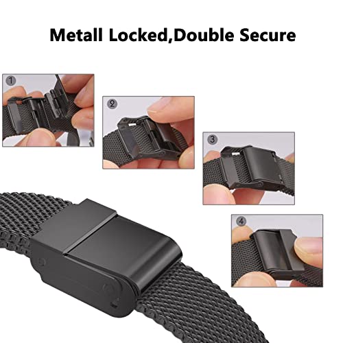GiiMos 20mm Cinturino Compatibile con (20mm) Huawei Watch GT 3 42mm/GT 2 42mm, Rete Metallo Regolabile Watch Band in Acciaio Inossidabile per Honor Magic Watch 2 42mm/Amazfit GTS 3/ GTS 2- Nero