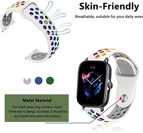 GiiMos Cinturino Compatibile con (20 mm) Amazfit GTR 3/GTR 3 Pro/GTS 2 Mini/GTS 2/GTS 2e, Colori Arcobaleno Cinturini Sportiva in Silicone Morbido e Traspirante per Amazfit GTR 42mm/GTS - Bianca