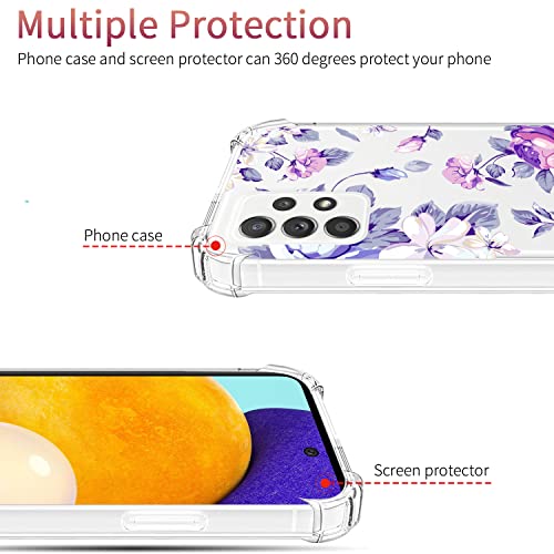 GiiMos Cover Compatibile con Samsung Galaxy A52s 5G / A52 5G /A52 4G, [Con 2 Vetro Temperato] Floreale TPU Custodia, Antiurto Bumper Case Applica a Galaxy A52s 5G / A52 5G /A52 4G - Viola