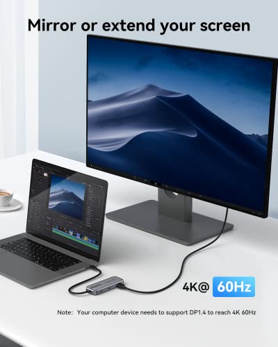 HDMI 4K a 60 Hz: l'hub USB C Hdmi supporta 4K 3840 x 2160 a 60 Hz e trasmette video 4K o Full HD 1080p tramite mirroring o modalità estesa su HDTV, monitor o proiettore. Assicurati che il tuo dispositivo sia la versione DP 1.4 per ottenere 4K a 60 Hz. (modalità DP1.2 fino a 4K a 30 Hz)