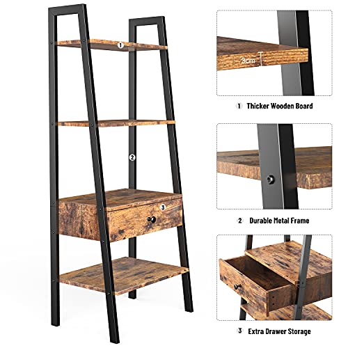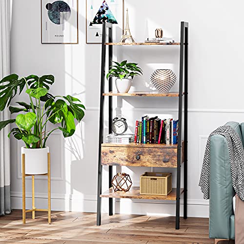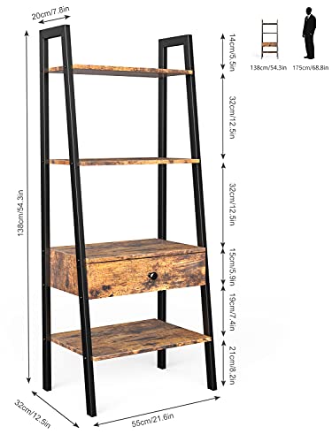 GIKPAL Scaffale a Scala, Libreria Industriale a 4 Ripiani Scaffalature di Stoccaggio in Legno con Cassetto per Soggiorno, Camera da Letto, Cucina, Ufficio, 138 x 55 x 32 cm