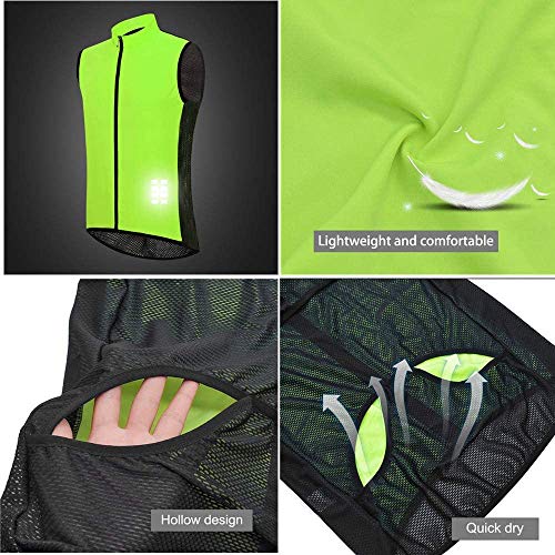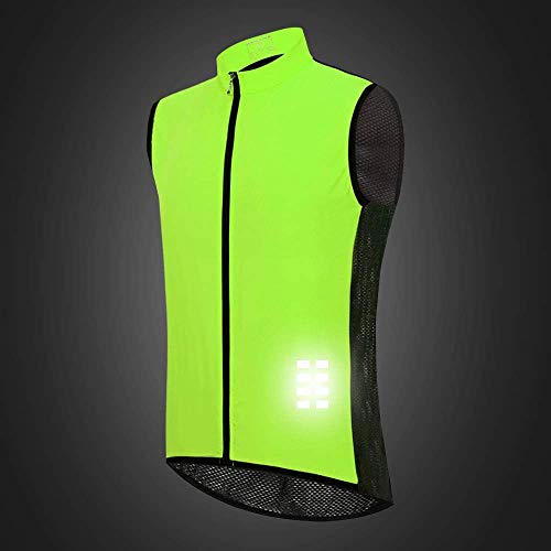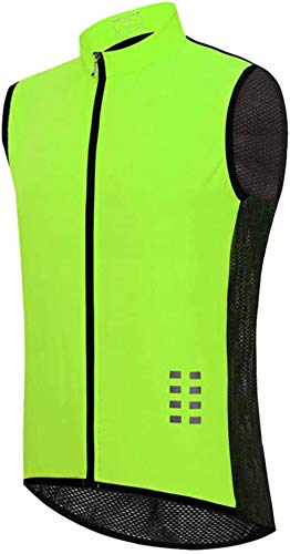 Gilet Da Ciclismo Da Uomo, Leggera Traspirante Senza Maniche Cappotto Biciclette Gilet Antivento, Zip Integrale Giacca Da Corsa/MTB Riflettente Leggera (XL,Verde)