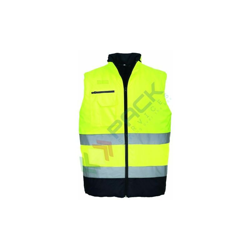 Un classico gilet bicolore. Le tasche multifunzione tra cui quella per lo smart phone offrono spazio in abbondanza, mentre l'imbottitura mantiene caldo chi lo indossa. Finitura in tessuto resistente all'acqua, le gocce d'acqua scivolano sulla superficie del tessuto Foderato per un maggiore calore e comfort Tasca interna sul petto Tasche con cerniera Porta badge a doppio verso permette di visualizzare l'ID card sia in orizzontale che in verticale Certificato EN ISO 20471 per oltre 50 lavaggi Banda riflettente per una maggiore visibilità Tasca per cellulare 6 ampie tasche Anello radio per facilitare l'aggancio di una radio Certificato CE Disponibile fino alla taglia 3XL Nuovo colore