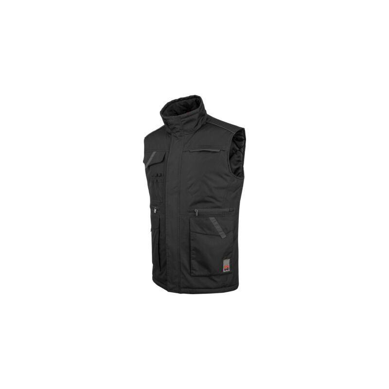 Gilet impermeabile nero Uomo Gilet imbottito da uomo per il lavoro. Tessuto nero impermeabile e collo alto antivento.. Punti di forza: 8 tasche esterne e 1 interna inserti riflettenti portapenne, badgeholder clips tessuto ripstop idrorepellente Composizione: 100% poliestere oxford - 280 g/m², imbottitura 100% poliestere - 140 g/m²