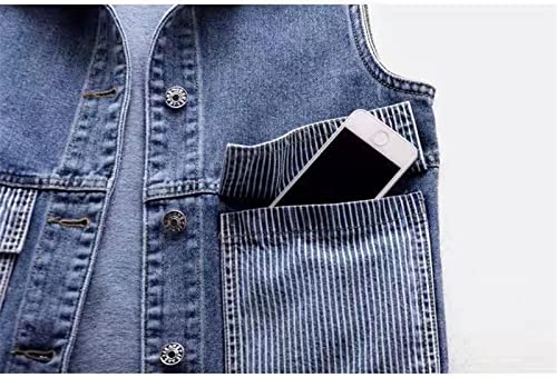 Gilet Di Jeans Da Donna Giacca Corta - Primavera Autunno Tasche Con Patta Sul Petto Jeans Gilet Monopetto Senza Maniche Taglie Forti Casual Top Femminile Per Office Lady Outwear,Blue Navy,3X,Larg
