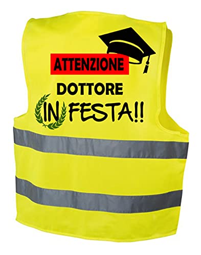 gilet in poliestere con bande ad alta visibilità che riflettono la luce quando vengono illuminate in modo che potrai farti notare nel migliore dei modi - con stampa a tema per laurea