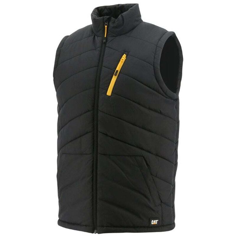 Caratteristiche: Ottima ritenzione del calore sul busto Facilità di movimento del braccio Buona ergonomia Gilet trapuntato senza maniche 2 tasche frontali con zip 1 tasca pettorale gialla a contrasto con il logo sulla cerniera 1 zip frontale completa con patta antivento interna Tasca interna portaoggetti con chiusura a strappo Coulisse elastica regolabile in vita Logo CAT in silicone sull'anca sinistra Composizione: Tessuto esterno: 100% nylon ripstop, 60 g/m² Fodera: 100% poliestere Isolamento: 100% poliestere, 200 g/m² Aree di applicazione: Esterno in loco Autista macchina