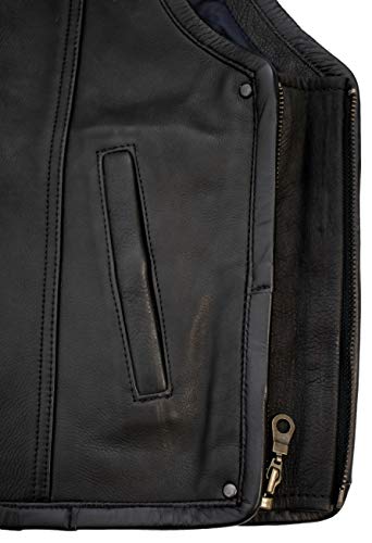 Un bordo in pelle nera è stato trattato attorno al gilet da motociclista