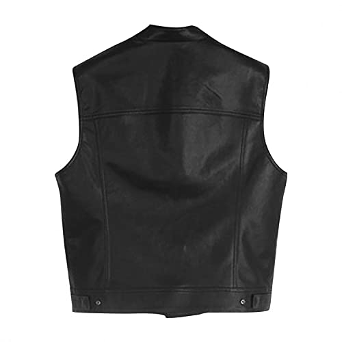 Gilet da Motociclista In Vera Pelle da Uomo in Pelle Gilet Classico con Bottoni Gilet in Pelle Gilet Biker Gilet Senza Maniche Nero