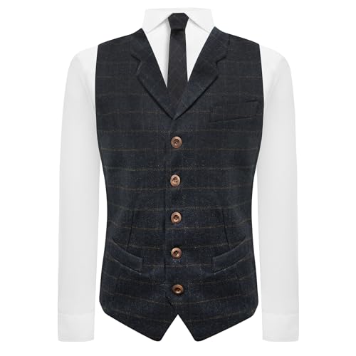 Elegante gilet blu navy con risvolto in tessuto misto lana premium con controllo Heritage complementare