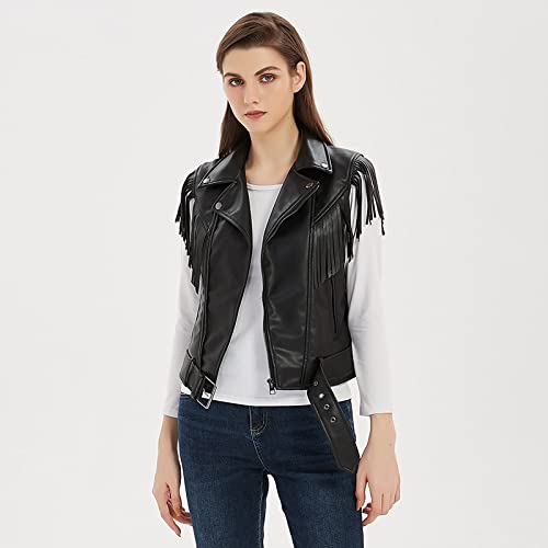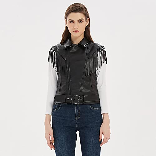 Gilet in pelle DONNE. PU. Gilet di cuoio gilet inverno modelli gilet for moto sottile tuta sportiva giacca gilet nappa (Color: Black, Size: X-large)