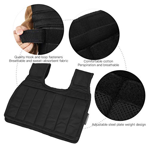 CARICO MASSIMO DI 5 KG: Il carico massimo del giubbotto di sabbia da corsa, 5 kg, design regolabile, la piastra in acciaio può regolare il peso in base al proprio fisico e alla capacità di carico, Può essere caricato con sabbia, sabbia ferrosa, piastra in acciaio