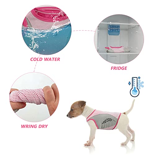 Gilet Rinfrescante per Cani,Giacca di raffreddamento per cani,Abbigliamento estivo traspirante per cuccioli con striscia riflettente,Maglietta con Gilet per cani di piccola e media taglia (M, Pink)