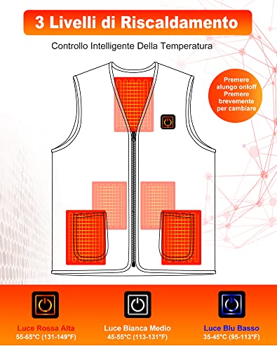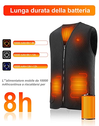 M8C Gilet Riscaldato, USB Giacca Riscaldata Elettrico Lavabile, 3 Temperatura Regolabile Riscaldamento Giubbotto per Sci Pesca Escursionismo (Batterie Non Incluse)