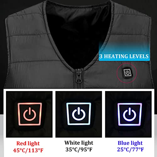【Temperatura regolabile a 3 livelli】Questo gilet caldo ha 3 livelli di riscaldamento (luce blu: 25 ° C / 77 ° F, luce bianca: 35 ° C / 95 ° F, luce rossa: 45 ° C / 113 ° F), facile da operare, dire facilmente addio al freddo.