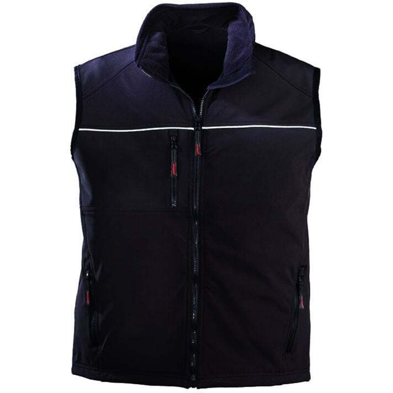 Caratteristiche: Chiusura lampo fino alla sommità del colletto Colletto in piedi Coulisse ai lati Rinforzi per le spalle 2 tasche inferiori, 1 tasca sul petto con cerniera Piping retroriflettenti Materiali: Softshell (94% poliestere / 6% spandex), idrorepellente e traspirante accoppiato a micropile 100% poliestere 310 g/m² Standard: EN 340:2003