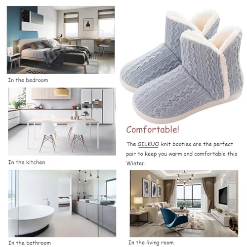 GILKUO Pantofole a Stivaletto Donna Uomo Invernali da Casa Chiuse Peluche Calde Ciabatte Alte Chiuse Antiscivolo Blu 38 39