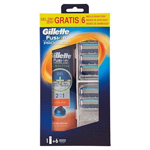 Gillette Fusion ProGlide 6 Lamette di Ricambio per Rasoio con Gel da Barba Fusion 2 in 1 Active Sport 170 ml Gratis