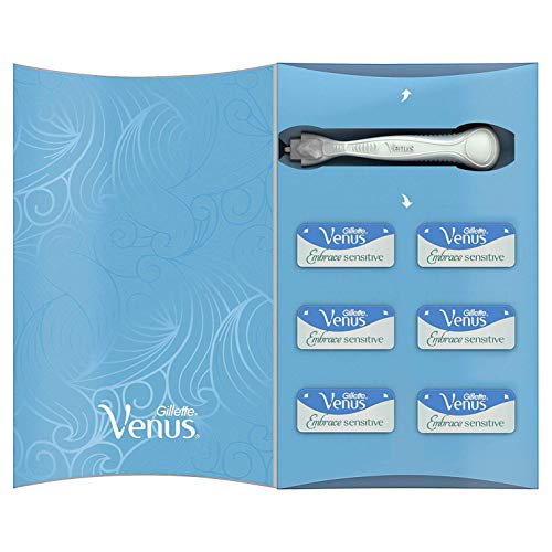 Gillette Venus Embrace Sensitive Rasoio da Donna + 6 Lamette di Ricarica
