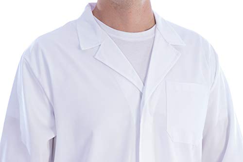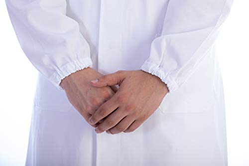 Camice bianco unisex con bottoni automatici o a pressione e polsini elasticizzati;
