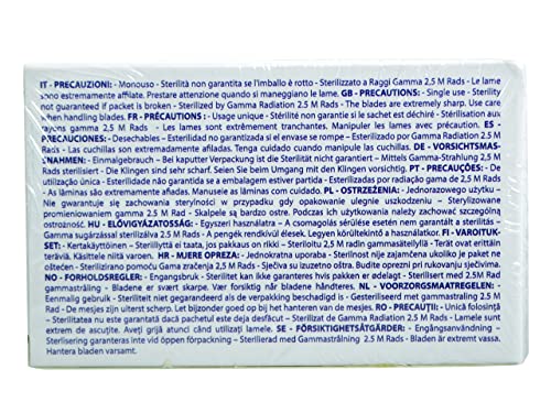 Ogni lama è sterilizzata mediante raggi gamma, protetta da carta e inserita in una bustina ad apertura rapida.