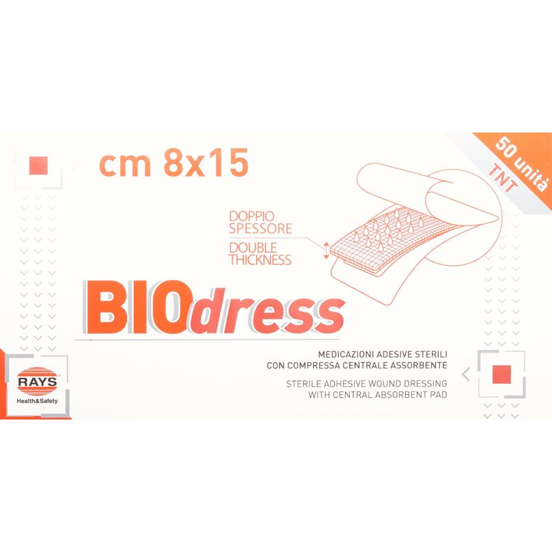 Tessuto non tessuto morbido e traspirante rivestito di poliacrilato adesivo ipoallergenico. Compressa centrale assorbente non aderente alla ferita in TNT piegato.