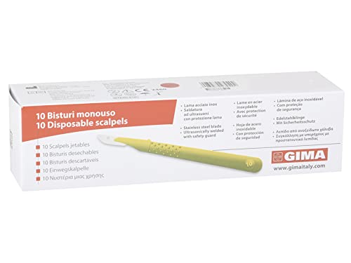 GIMA Bisturi in Acciaio Inox, Manico in ABS, Sterili e Monouso & Forbici Chirurgiche Rette, Punte Alterne, Smussa/Acuta, Misura 14.5 cm, in Acciaio Inox