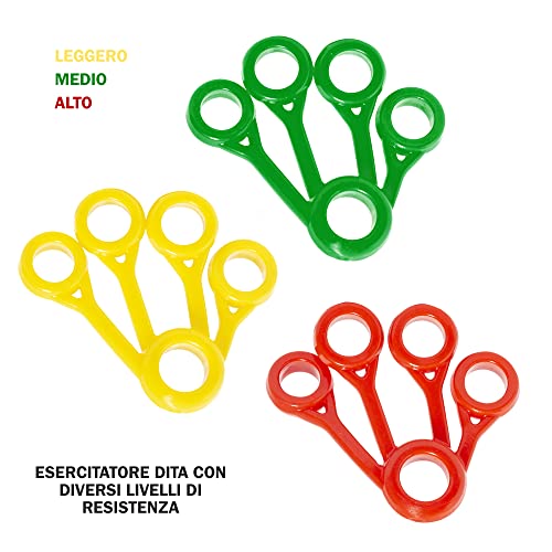 Gima - Esercitatore Dita, Set di 3 Pezzi con Diversi Livelli di Resistenza, Giallo/Leggero, Verde/Medio, Rosso/Forte.