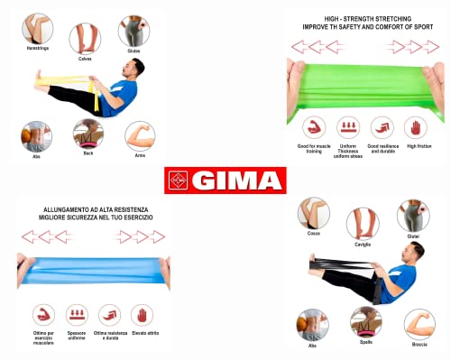 Gima - Set 5 Fasce Elastiche, Senza Lattice, 5 livelli di resistenza: Giallo, X-Light - Verde, Light - Rosso, Medium - Blu, Heavy - Nero, X-Heavy.