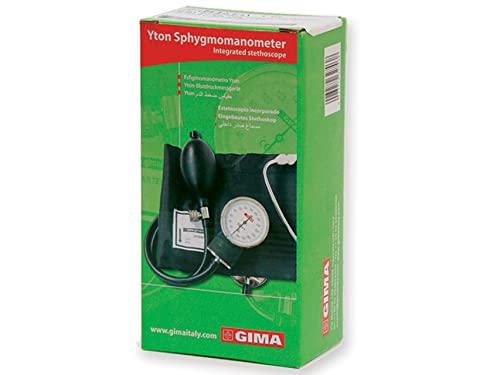 Gima Sfigmomanometro Aneroide YTON Classico con Stetoscopio Incorporato, con bracciale in nylon con chiusura velcro e manometro staccato agganciabile sul bracciale per facilitare la lettura.