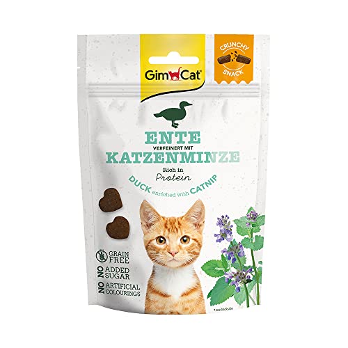 CONTENUTO: 1 sacchetto 50 g GimCat Crunchy Snacks Anatra con menta gatta per gatti felici
