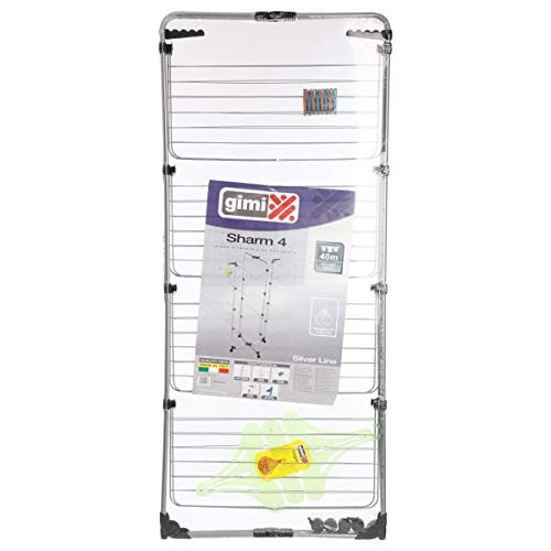 GIMI Modular 4 Stendibiancheria da Pavimento a Torre in Acciaio, 40 m Stendibili, grigio, metallo, ripiegabile