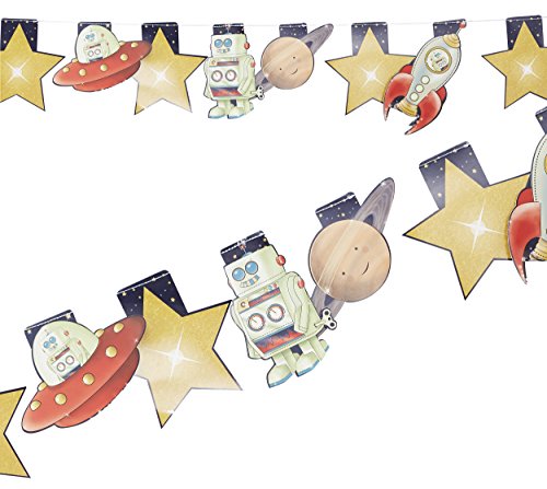 Ginger Ray Space Adventure Party Spaceship & Robot Cupcake Cases & Toppers misti, Carta, Misto, 3.5 meters in length with 14 flags