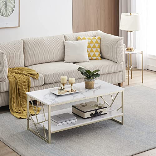 Ginhow Tavolino da salottino, bianco, in marmo MDF, quadrato, per divano, soggiorno, soggiorno, tavolino da caffè, 110 x 54 cm