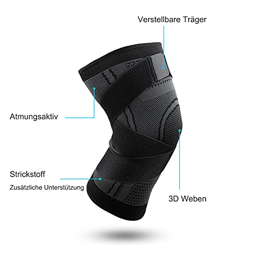 Ginocchiera Supporto per Ginocchio 1 Paio Tutore Ginocchio da Uomo/Donna per artrite ACL, sport, fitness, pallavolo, ciclismo, jogging (nero, XL)