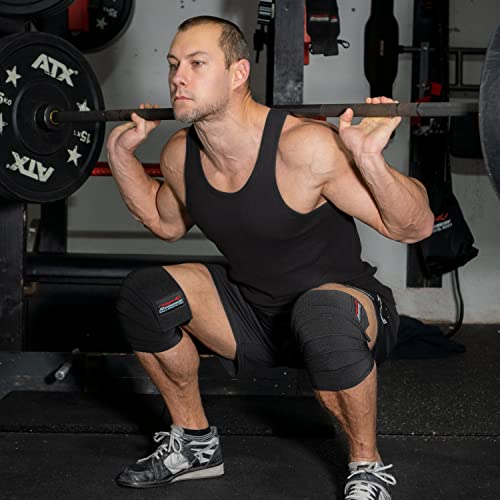 Ginocchiere per avvolgere Hard [set da 2 pezzi] (+ piani di allenamento) V2 versione migliorata, fasce elastiche per ginocchia con chiusura in velcro, per bodybuilding, sport di forza, per donne e
