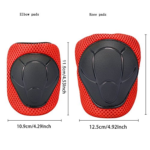 Set di ginocchiere, gomitiere e protezioni per polsi, per skateboard, ciclismo, equitazione e altri sport, monopattino, bicicletta, pattini in linea, Red