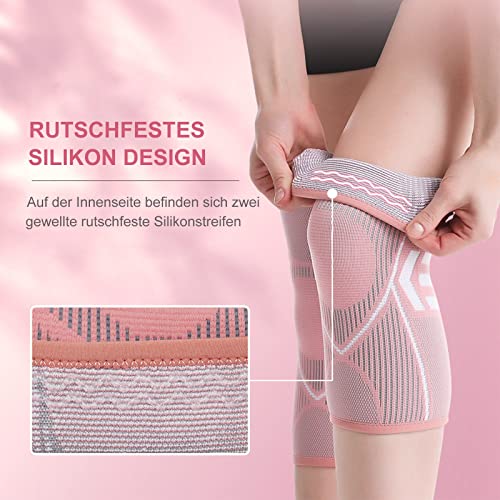 Ginocchiere Sportiva Compressione Ginocchio Elastica Tutore Ginocchio Legamenti Ginocchiere per artrite, tendinite, affaticamento sportivo 2 pezzi (M, Grigio+rosa)