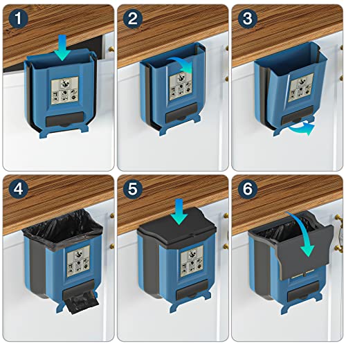 Gintan Pattumiera pieghevole da appendere con coperchio Cucina da campeggio, Pattumiera pieghevole da cucina da cucina sospesa Cucina/Campeggio/Auto/Bagno/Ufficio/Camera da letto(Blu)