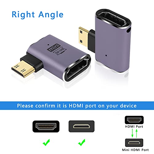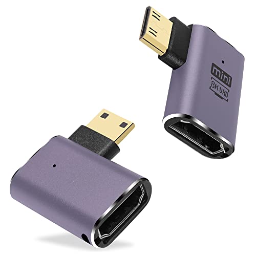 GINTOOYUN Adattatore Mini HDMI a HDMI standard 2.1 versione Mini HDMI maschio a HDMI femmina adattatore di collegamento per fotocamera, laptop, tablet, HDTV, proiettore 2 pezzi (curva destra)