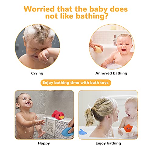 【Simpatici giocattoli da bagno galleggianti】i simpatici giocattoli degli animali possono galleggiare sull'acqua e schizzare l'acqua quando schiacci i loro corpi, i personaggi di leoni marini e polpi possono emettere suoni carini, più modalità di gioco fanno innamorare il tuo bambino con il bagno. la piccola stella marina polpo può rilevare la temperatura dell'acqua cambiando il suo colore quando la temperatura dell'acqua supera i 38 gradi.