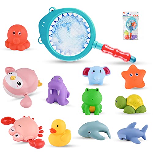 Giocattoli da Bagno per Bambini, 12 Pezzi Giochi Bagnetto Galleggianti Giochi Acqua Giocattolo per Piscina con Rete da Pesca Gioco per Vasca da Bagno Giocattolo Che Nuota Regalo per Bambini