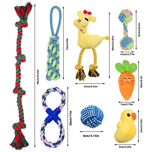 ◆ 8 pezzi di giocattoli per cani di lunga durata ◆ Il nostro set di giocattoli per cani è composto da 8 giocattoli più popolari tra i cani: giocattoli di peluche, giocattoli di corda, giocattoli da masticare, palline di corda di cotone, che sono in colori belli e vivaci, è ideale per cani di taglia media o piccola. Questo è un versatile giocattolo per cani che permette ai vostri cani di giocare da soli o giocare con loro e godersi il divertimento mentre si rilassa.