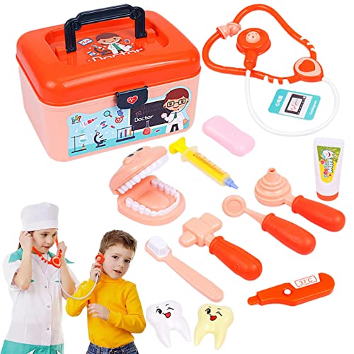 Giocattoli da Dentista per Bambini, 14 Pezzi Set da Gioco da Dottore per Bambini, Set da Gioco Medico da Vestire, Set da Gioco di Ruolo da Dottore con Custodia per Il Trasporto e Stetoscopio, Kit Medi